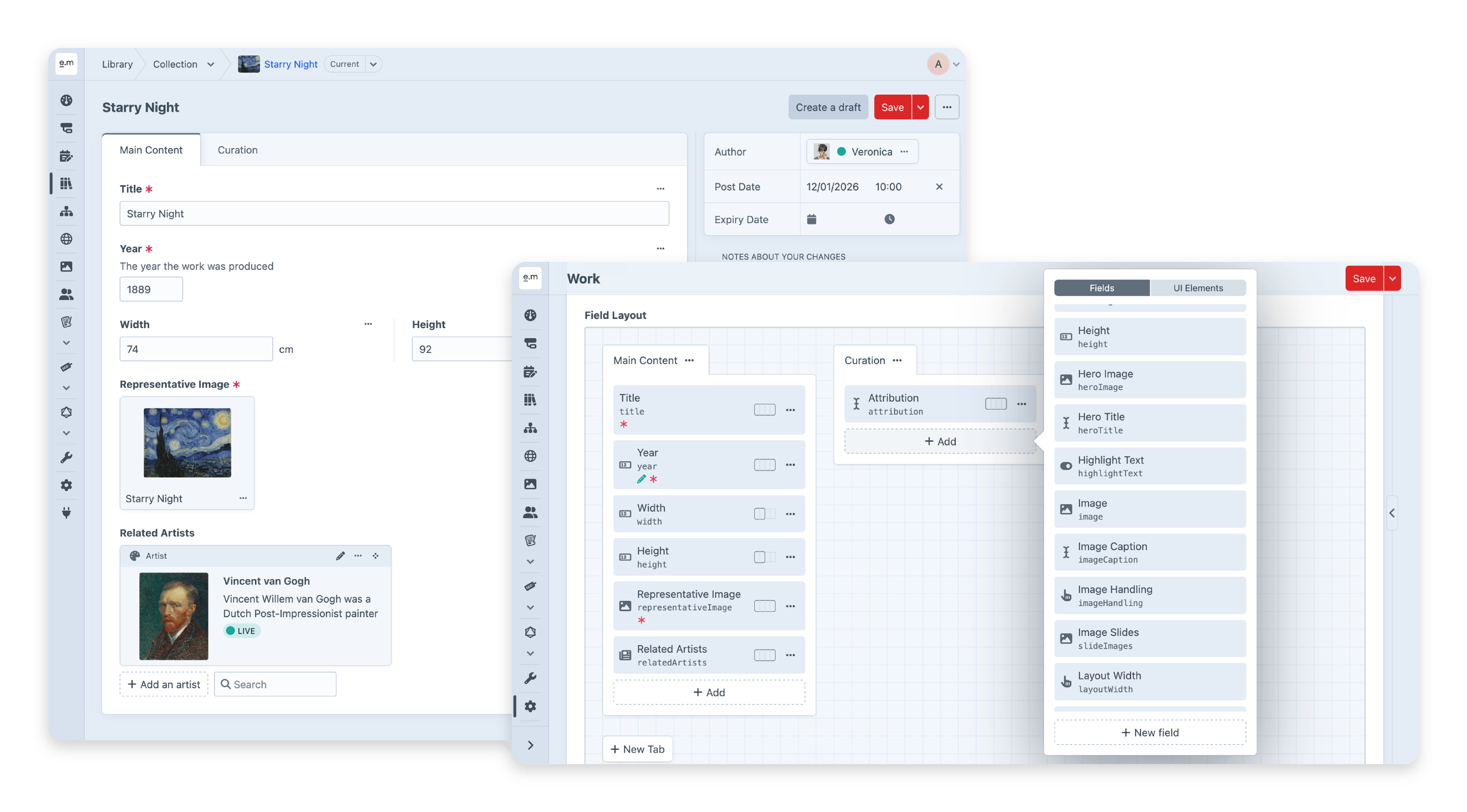 Craft has over 20 built-in field types that help create tightly-tailored authoring and developer experiences.