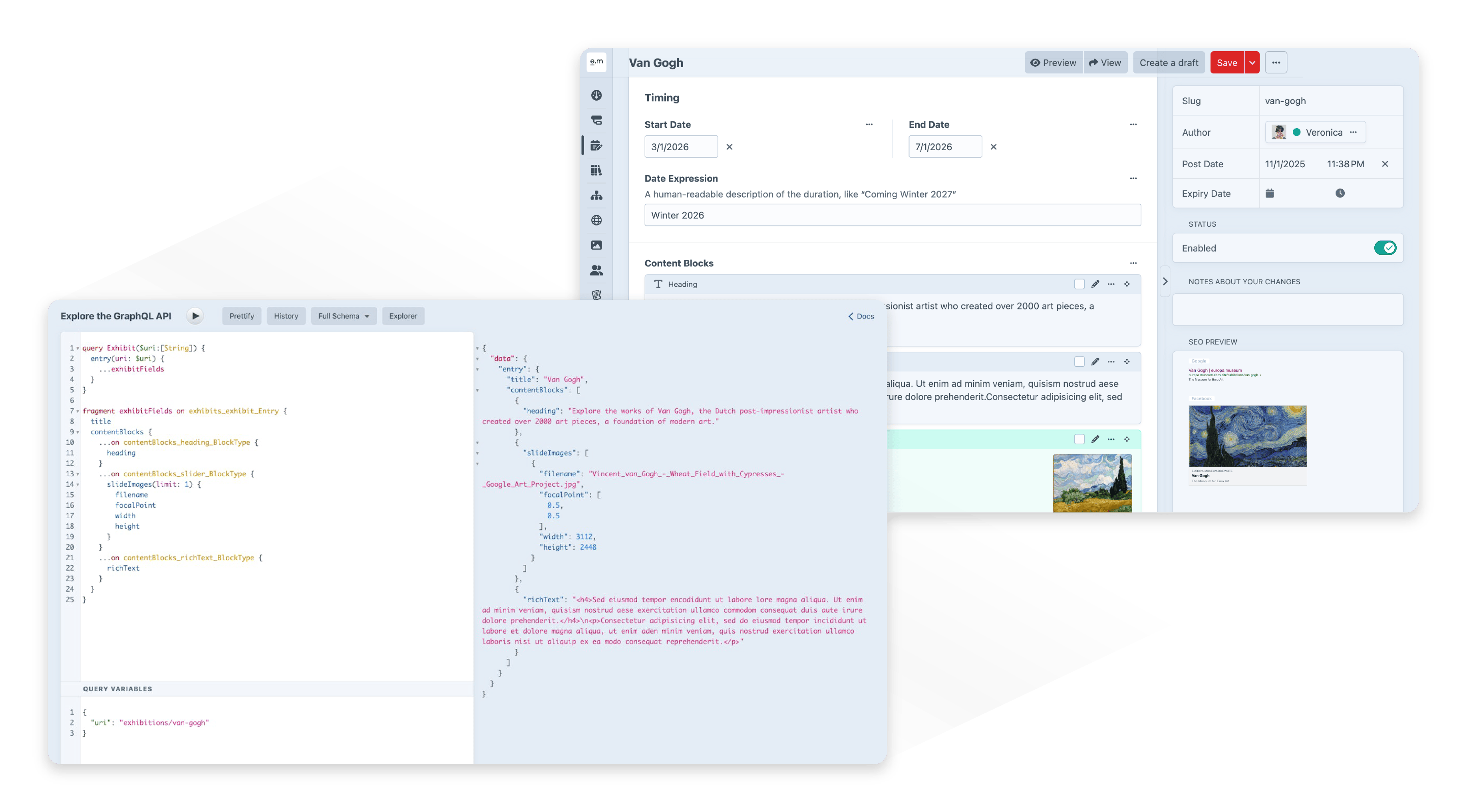 Craft also makes your content available via GraphQL, or run Craft in its fully-headless mode.