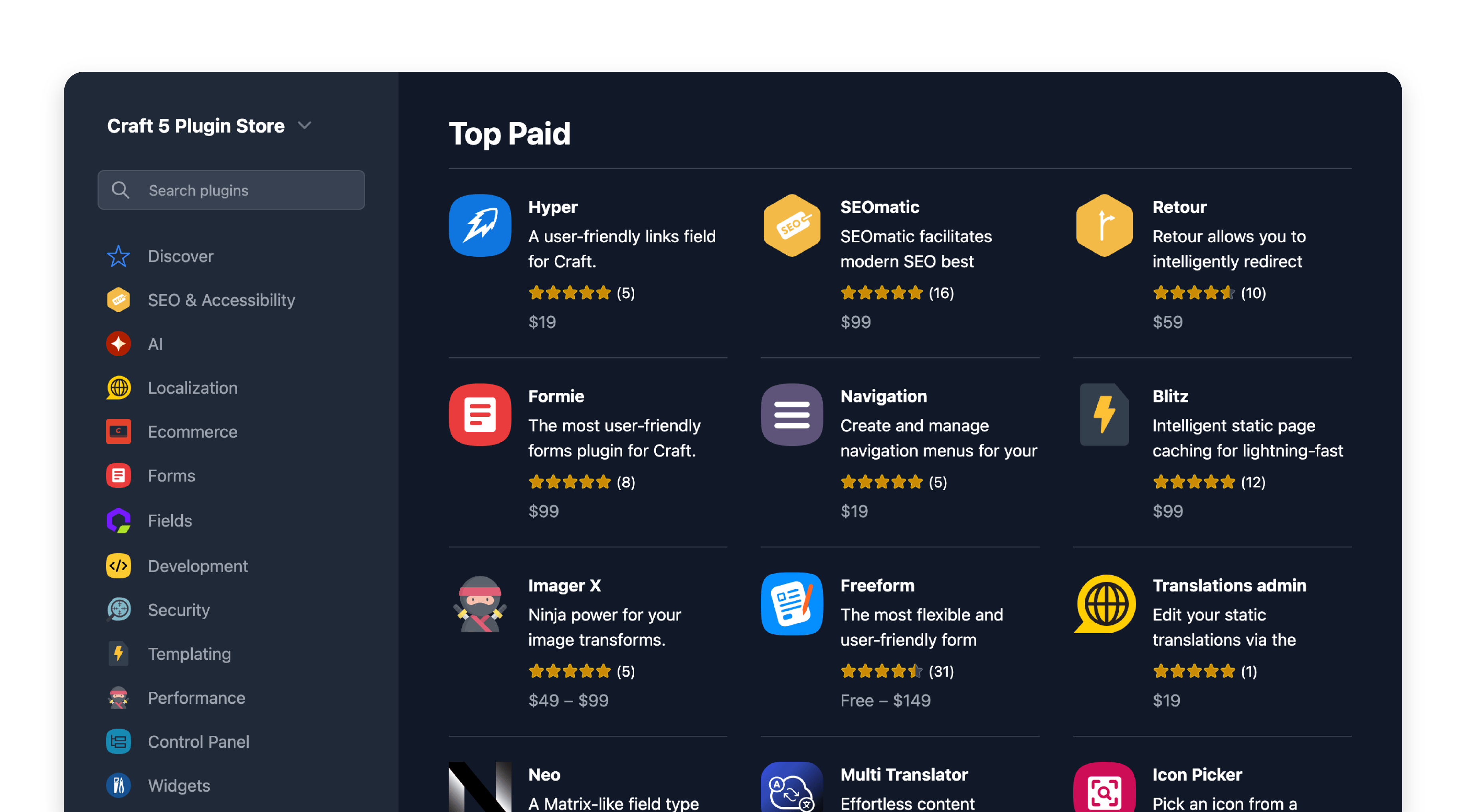Use and develop free or paid plugins for the Craft Plugin Store.